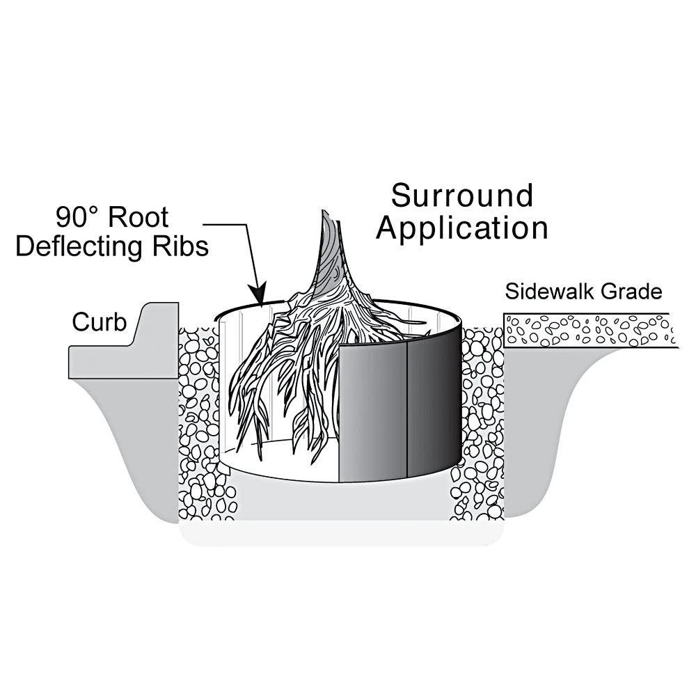 The Rigid Panel Root Barrier has a flexible top safety edge for linear or surround applications, raised root deflecting ribs, and an interlocking panel design. Additionally, it redirects root growth downward and is made of 50% recycled polyethylene with ultraviolet inhibitors.
